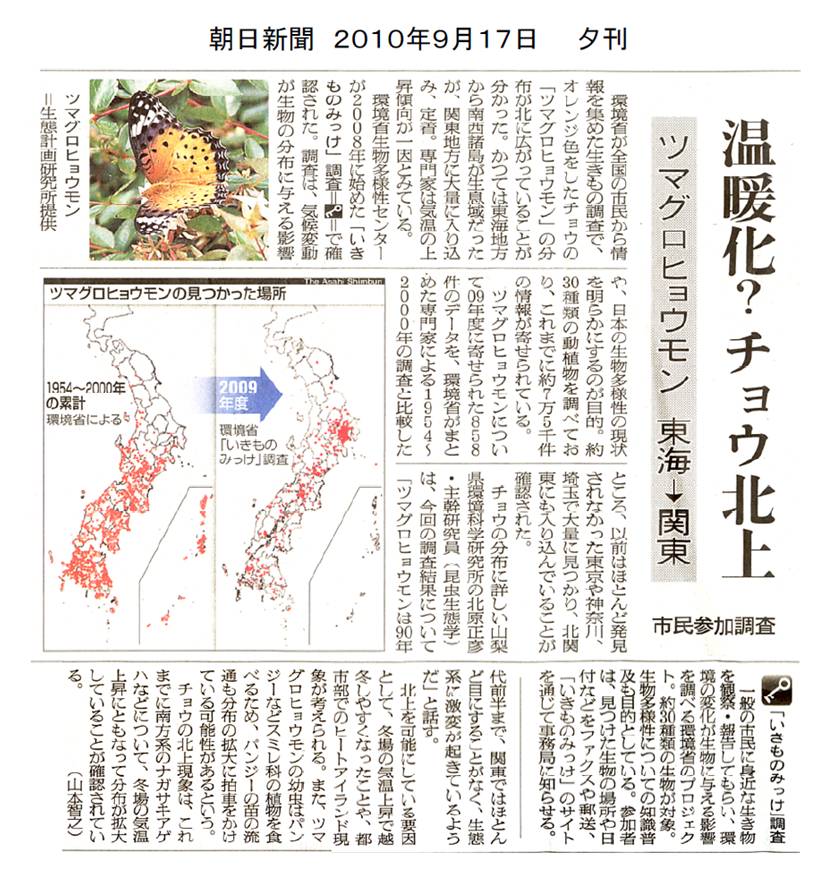 温暖化ウォッチ(14)チョウの分布域北上現象と温暖化の関係 (nies.go.jp)