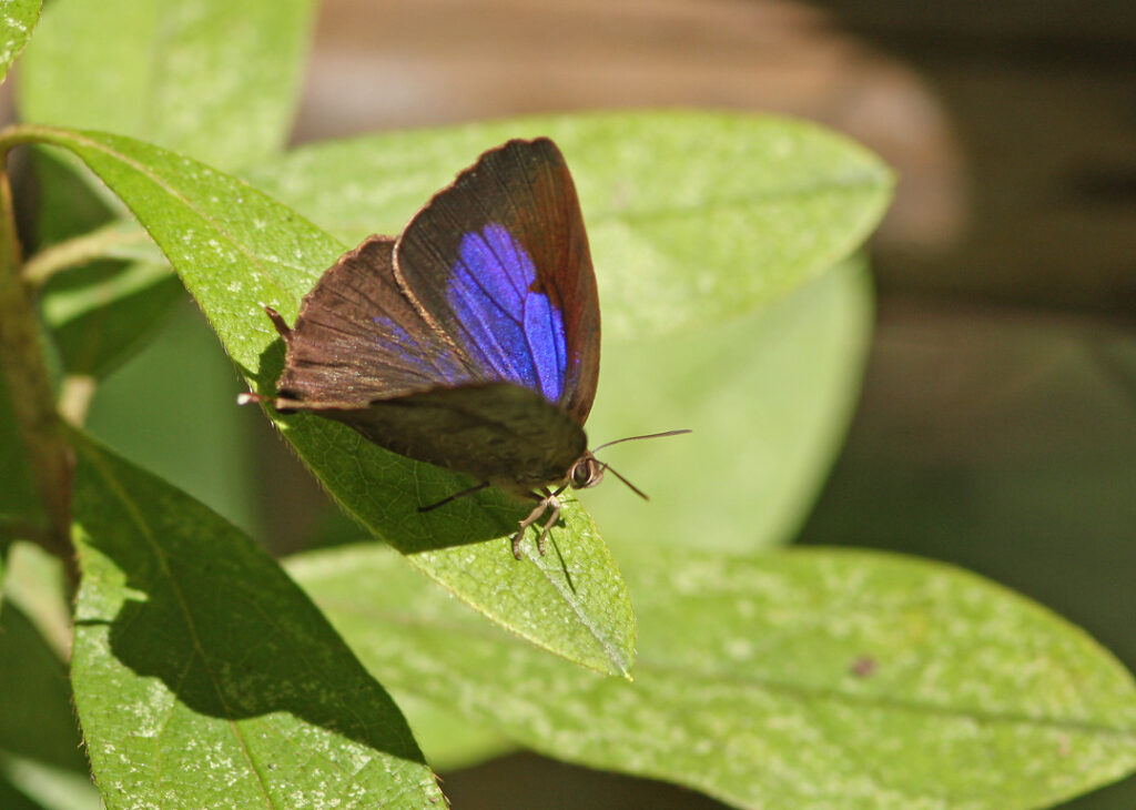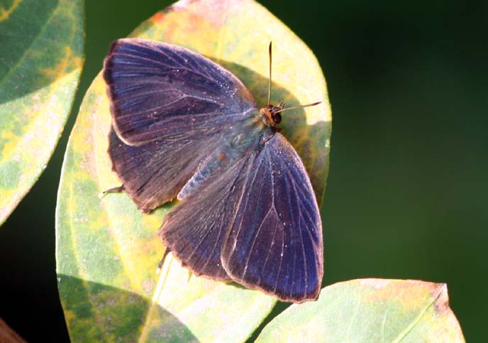 ▲翅を開くときれいな青紫色が見えるので、チョウ愛好家に人気