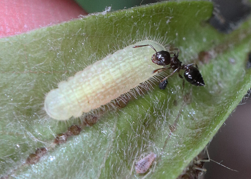 ▲井の頭公園内(百年森)のアシボソで発見された幼虫と蛹